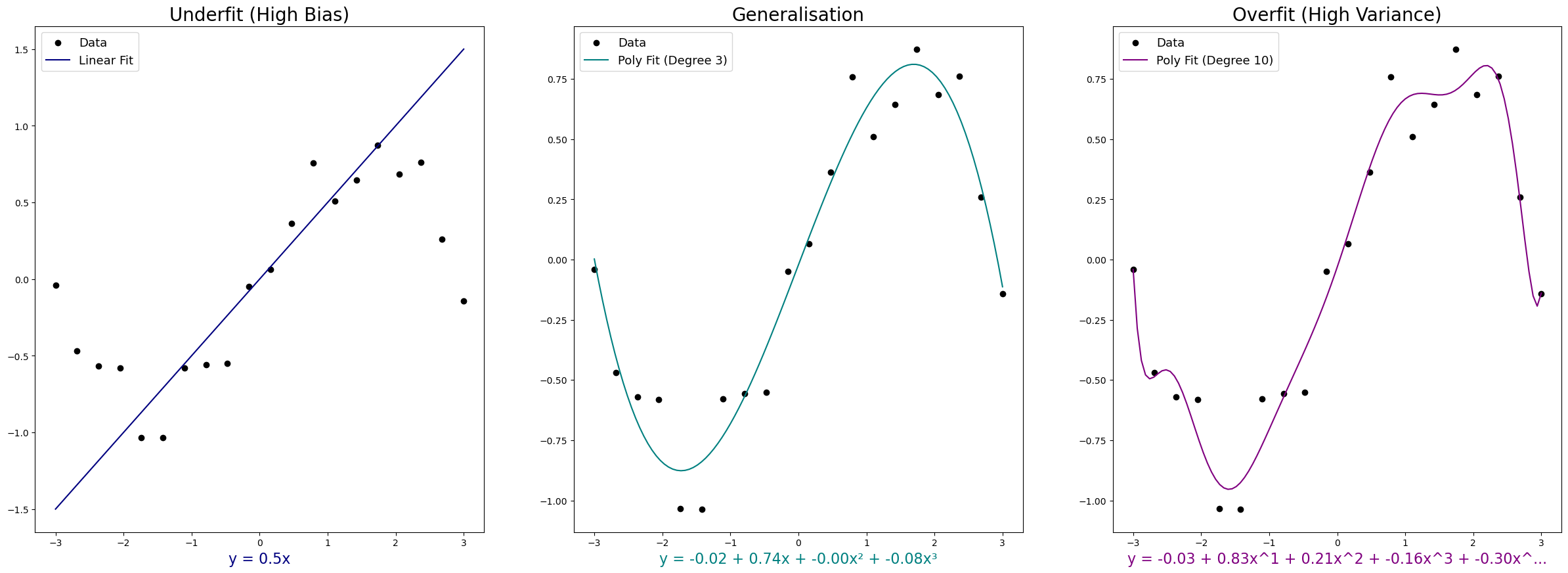 A model that generalises well avoids both extremes. It captures the underlying pattern without being distracted by noise.