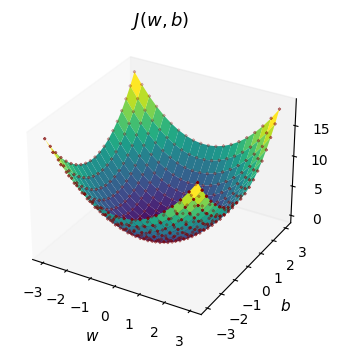 \[J(w, b) = \frac{1}{2m} \sum_{i=1}^{m} (f_{w,b}(x^{(i)}) - y^{(i)})^2\]